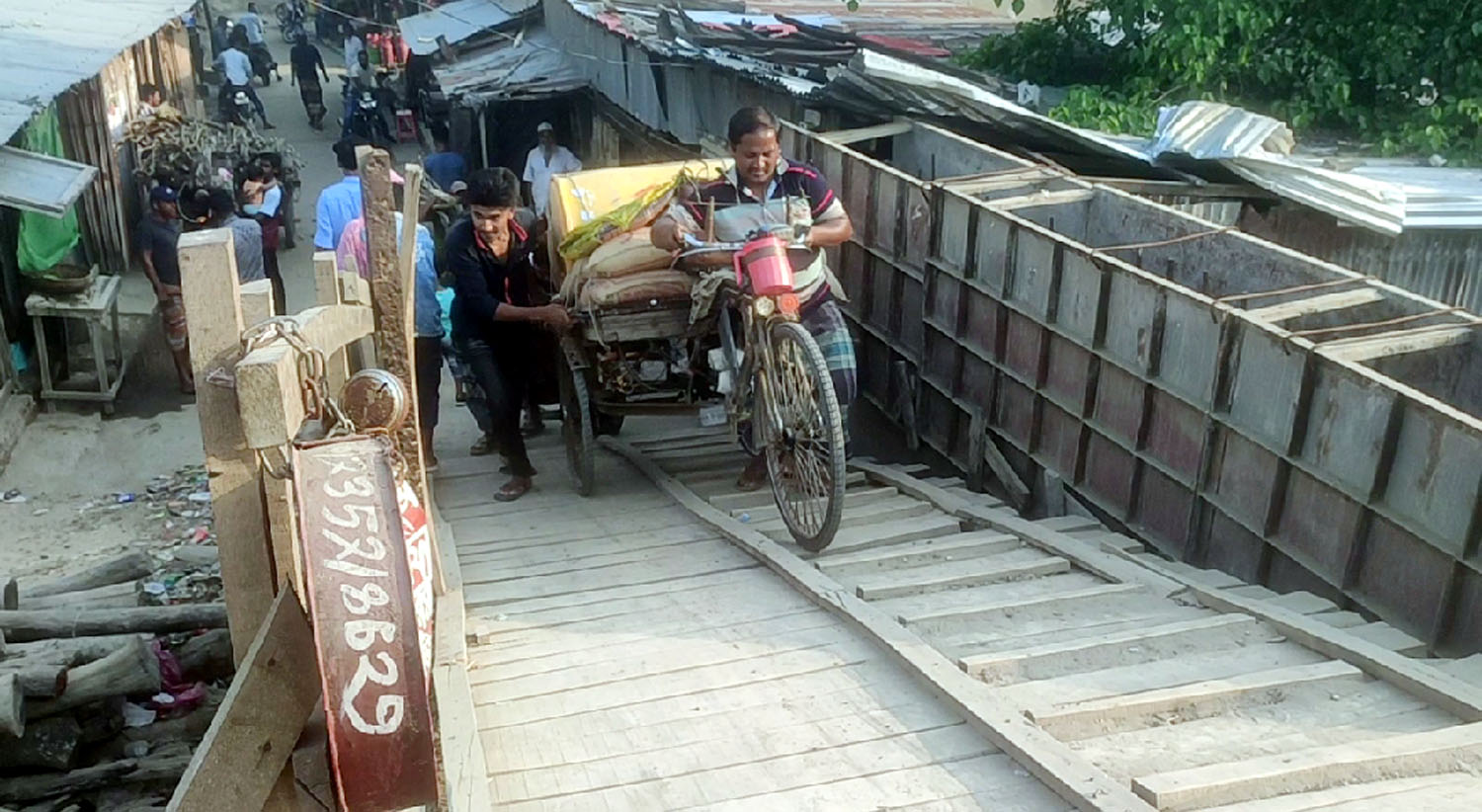 মো.নাহিদুল হকঃ কলাপাড়ায় কোটি টাকার ব্রিজ পার হতে হয় কাঠের সাঁকো দিয়ে। উপজেলার লালুয়া ইউনিয়নের বানাতি বাজার ও মহল্লাপাড়া যাতায়াতের ব্রীজের কাজ শেষ হলেও সংযোগ সড়কের কাজ অসমাপ্ত রয়েছে। দীর্ঘদিন অপেক্ষার পর ব্রীজের দুই প্রান্তে কাঠের সাঁকো বানিয়ে চলাচল করছে এলাকাবাসী। এতে প্রায়ই ছোট-বড় দুর্ঘটনার শিকার হচ্ছেন পথচারীরা। ব্রীজের দুই প্রান্তে মাটি ভরাটের কাজ শেষ করে ব্রীজটি জনসাধারনের চলাচলের উপযোগী করে দেয়ার দাবী জানান স্থানীয়রা। এদিকে ব্রীজের সংযোগ স্থলের জায়গা নিয়ে স্থানীয়দের সাথে জটিলতা থাকায় মাটি ভরাটের কাজ আটকে রয়েছে বলে জানিয়েছেন ঠিকাদার প্রতিষ্ঠান ও সংশ্লিষ্ট দপ্তর।
