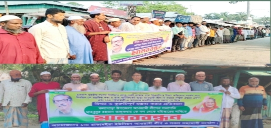 একদিন মঙ্গলবার বেলা ১১ টায় চাকামইয়া ইউনিয়নের নিশানবাড়িয়া ব্রিজ সংলগ্ন এলাকায় মানববন্ধন অনুষ্ঠিত হয়।