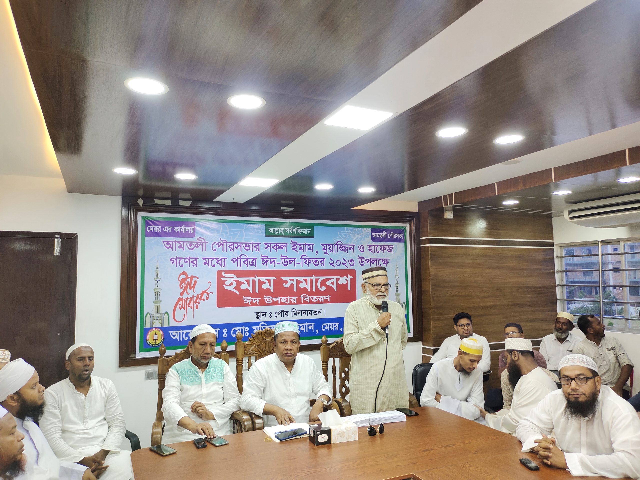 শুক্রবার বিকেলে পৌরসভা মিলনায়তনে অনুষ্ঠিত ইমাম সমাবেশে সভাপতিত্ব করেন পৌর মেয়র মোঃ মতিয়ার রহমান। প্রধান অতিথি হিসেবে উপস্থিত ছিলেন উপজেলা পরিষদ চেয়ারম বীর মুক্তিযোদ্ধা এ্যাডভোকেট এমএ কাদের মিয়া। বিশেষ অতিথি ছিলেন উপজেলা পরিষদ ভাইস চেয়ারম্যান মোঃ মজিবুর রহমান। ইমাম সমাবেশ বক্তব্য রাখেন প্যানেল মেয়র মোঃ হাবিবুর রহমান, কাউন্সিলর মোঃ সামসুল হক চৌকিদার, মোয়াজ্জেম হোসেন ফরহাদ,ইমাম মাওলানা মোঃ আনিসুর রহমান, মাওলানা আব্দুর নুর, মাওলানা মোঃ শহিদুল ইসলাম প্রমুখ।