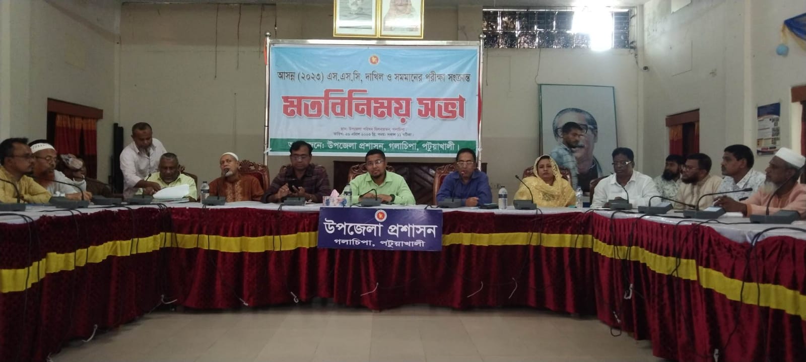 সঞ্জিব দাস, গলাচিপাঃ গলাচিপায় চলতি বছরের মাধ্যমিক স্কুল সার্টিফিকেট (এসএসসি), দাখিল ও সমমান পরীক্ষা ২০২৩ সুষ্ঠুভাবে আয়োজনের লক্ষ্যে এক মতবিনিময় সভা অনুষ্ঠিত হয়েছে। বুধবার (২৬ এপ্রিল) সকাল ১০ টায় উপজেলা প্রশাসনের উদ্যোগে উপজেলা অডিটরিয়াম সভা কক্ষে এ সভা অনুষ্ঠিত হয়। সভায় প্রধান অতিথি হিসেবে উপস্থিত ছিলেন উপজেলা নির্বাহী অফিসার মো. মহিউদ্দিন আল হেলাল। বিশেষ অতিথি হিসেবে উপস্থিত ছিলেন উপজেলা মাধ্যমিক শিক্ষা অফিসার মো. গোলাম মোস্তফা।