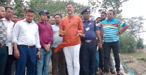 সঞ্জিব দাস,গলাচিপাঃ পটুয়াখালীর রামনাবাদ নদীর তীরের কোল ঘেঁষে গড়ে উঠেছে ডাকুয়া ইউনিয়ন। এ ইউনিয়নের তেতুলতলা গ্রামটির পশ্চিম পাশ রামনাবাদ নদীর তীর ঘেঁষে গলাচিপা- বাউফল সড়ক। দীর্ঘদিন ধরে তেতুলতলা পয়েন্টে ওয়াবদা বেড়িবাঁধ তীব্র ভাঙ্গন দেখা দিয়েছে। মাত্র একসপ্তাহের ভাঙ্গনের তীব্রতায় বেড়িবাঁধ ভেঙ্গে সড়ক যোগাযোগ প্রায় বন্ধ হওয়ার উপক্রম হয়েছে। ঘটনাস্থল পরিদর্শন করে তাৎক্ষণিকভাবে জিও ব্যাগ ফেলে ভাঙ্গন রোধ করার ব্যবস্থা করান।