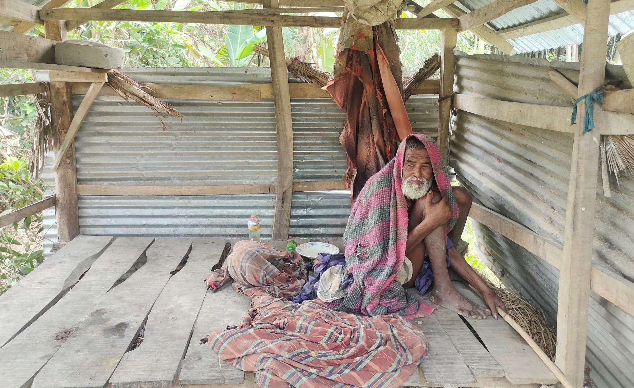 বুধবার সরেজমিনে গিয়ে দেখাগেছে, বৃদ্ধ শানু মৃধা একটি ছাগলের খোয়ারে নোংরা অবস্থায় বসে আছেন। তার পাশে ছাগল ছুটাছুটি করছে। মানুষ দেখলেই হাউমাউ করে কেঁদে দেয় আর খাবার চায়। শরীর ও ঘর থেকে দূর্গন্ধ বের হচ্ছে। নাখ চেপে মানুষকে বৃদ্ধের কাছে যেতে হয়। মল-মুত্র ঘরে ছড়িয়ে ছিটিয়ে আছে। ওই মল-মুত্রের মধ্যে তিনি বসবাস করছেন। কেউ তার নোংরা পোশাক পরিষ্কার করছে না।