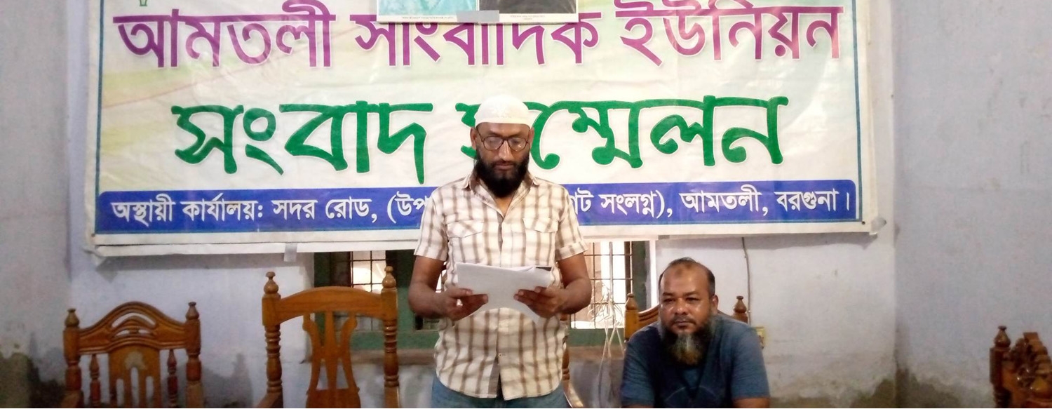 লিখিত সংবাদ সম্মেলনে মৃণাল তালুকদার বলেন, আমতলী মৌজার ১১৩৯ নং খতিয়ানের ২ একর ৯০ শতাংশ জমি আমার বাবা মৃত্যু বারেক তালুকদার ও তার ওয়ারিশরা ভোগদখল করে আসছে। ওই জমি দাবী করে খালেদা, রাশিদাসহ সাত বোন আমতলী ভুমি অফিসে ১১৭০ আম ২০১৯-২০ সালে ই-নামজারি করেন। ওই ই-নামজারি বাতিল করতে আমি ও আমার ওয়ারিশরা ভুমি অফিসে আপিল করেছি। ভুমি অফিস যাচাই বাছাই করে তাদের ই-নামজারি বাতিল করে দেন। পরে আমি ও আমার ওয়ারিশগণ বাদী হয়ে আমতলী সহকারী জজ আদালতে চিরস্থায়ী নিষেধাজ্ঞার আবেদন করেছি। আদালতের বিচারক ওই জমিতে চিরস্থায়ী নিষেধাজ্ঞা দেন। কিন্তু আদালতের নিষেধাজ্ঞা উপেক্ষা করে গত বরিবার সাইফুল ইসলাম সোহেল গাজী, কবির গাজী ও পান্নু মৃধা ওই জমিতে জোরপুর্বক ভোগদখলের চেষ্টা করেন। সংবাদ সম্মেলনে তিনি আরো বলেন, সোহেল গাজী আমাকে প্রাণ নাশের হুমকি দিচ্ছে। তার হুমকিতে আমি ও আমার ওয়ারিশরা জীবনের নিরাপত্তাহীনতায় ভুগছি। সংবাদ সম্মেলনে উপস্থিত ছিলেন তমাল তালুকদার ও মইনুল আহসান ডিকেন তালুকদার।