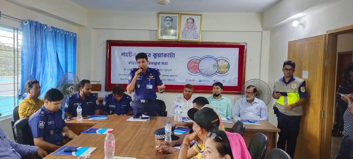 মোঃ মাহতাব হাওলাদার, মহিপুরঃ পর্যটন বান্ধব কুয়াকাটা বাস্তবায়নে পরিকল্পনা সভা অনুষ্ঠিত হয়েছে। ট্যুরিস্ট পুলিশ ও কুয়াকাটা পৌরসভার যৌথ আয়োজনে ২২ জুন (বৃহস্পতিবার) দুপুরে কুয়াকাটা পৌর সভা মিলনায়তনে অনুষ্ঠিত হয়েছে। এতে সহযোগিতা করেছেন মাল্টিপার্টি এ্যাডভোকেসি (এমএএফ) পটুয়াখালী।