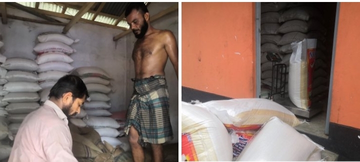 সরেজমিনে গিয়ে দেখাগেছে, ব্যবসায়ী ঘোটন কুন্ডুর গুদাম ঘরে সরকারী চালের অর্ধ শতাধিক বস্তা রয়েছে। তার দুই কর্মচারী গুদাম ঘর বন্ধ করে ভিতরে বসে ওই চালের বস্তা খুলে নুরজাহান ব্যান্ডের চালের বস্তায় চাল ভরছে।
