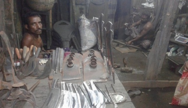 উপজেলার বিভিন্ন কামার পট্টিতে খোঁজ নিয়ে জানা গেছে, কোরবানির ঈদকে সামনে রেখে কামার শিল্পীরা দা, বটি, চাকু, চাপাতি সহ বিভিন্ন সরঞ্জামাদি তৈরি করতে এখন ব্যাস্ত সময় পার করছেন। কাজের চাপ থাকলেও মজুরি নিতে সন্তুষ্ট নন তারা। কামাররা বলেন, মেশিনের সাহায্যে বর্তমানে আধুনিক যন্ত্রপতি তৈরি হচ্ছে। ফলে আমাদের তৈরি যন্ত্রপাতির প্রতি মানুষ আকর্ষণ হারাচ্ছে। হয়তো একসময় এই পেশা আর থাকবে না। তবে কোরবানির ঈদের সময় আমরা একটু আর্শাবাদি হই। আমাদের বাপ-দাদার পেশা বলে শত কষ্টের মধ্যেও ধরে রেখেছি। সারা বছর তেমন কোন কাজ না থাকলেও কোরবানির সময় আমাদের কাজের চাহিদা বেড়ে যায়।