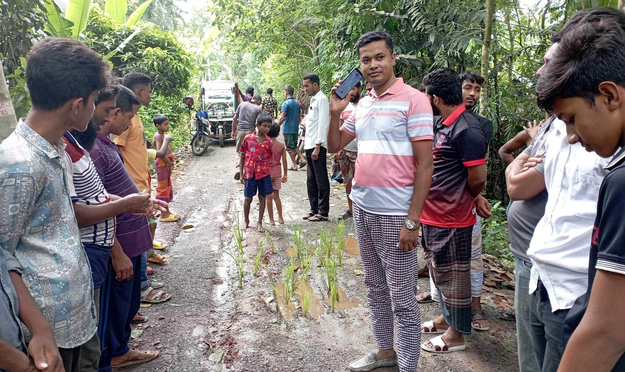 উপজেলা শ্রমিকলীগ সাংগঠনিক সম্পাদক মহসিন বলেন, ঠিকাদার শহীদুল ইসলাম মৃধা ও প্রকৌশলীর সড়ক নির্মাণ কাজের অনিয়মের প্রতিবাদে ধান গাছের চারা রোপন করেছি।