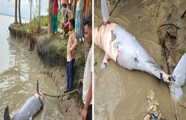 স্থানীয়রা জানান, উপজেলার শুভ সন্ধ্যা সমুদ্র সৈকতের পূর্ব দিকে ৬ ফুট দৈর্ঘ্য ও ২ ফুট প্রস্থের একটি ডলফিন ভেসে আসে। পরে স্থানীয়রা দেখতে পেয়ে বন বিভাগকে খবর দেয়। মৃত ডলফিনটি বন বিভাগ উদ্ধার করে মাটি চাপা দেয়। ডলফিনটির লেজ এবং গলায় আঘাতে চিহ্ন রয়েছে।