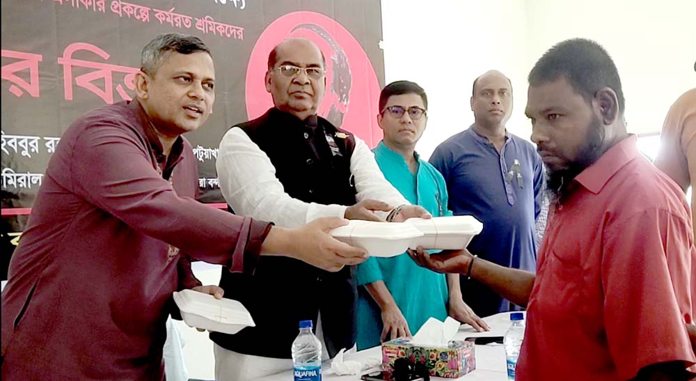 বিশ্বাস শিহাব পারভেজ মিঠুঃ বঙ্গবন্ধুর ৪৮ তম শাহাদাৎ বার্ষিকী ও জাতীয় শোক দিবস উপলক্ষে পায়রা বন্দরের পুর্নবাসন প্রকল্পের ১৩শ' শ্রমিকের মাঝে দুপুরের খাবার বিতরন করা হয়েছে। মঙ্গলবার দুপুর তিনটায় লালুয়া ইউনিয়নের হাসনাপাড়া গ্রামে নির্মানাধীন আবাসনে বসে এসব খাবার বিতরন। পায়রা বন্দরের চেয়ারম্যান রিয়ার এ্যাডমিরাল গোলাম সাদেকের সভাপতিত্বে এসময় প্রধান অতিথি হিসেবে উপস্থিত থেকে বক্তব্য রাখেন পটুয়াখালী-৪ আসনের সংসদ সদস্য ও প্রতিরক্ষা মন্ত্রনালয় সম্পর্কিত স্থায়ী কমিটির সদস্য অধ্যক্ষ মহিব্বুর রহমান মহিব।
