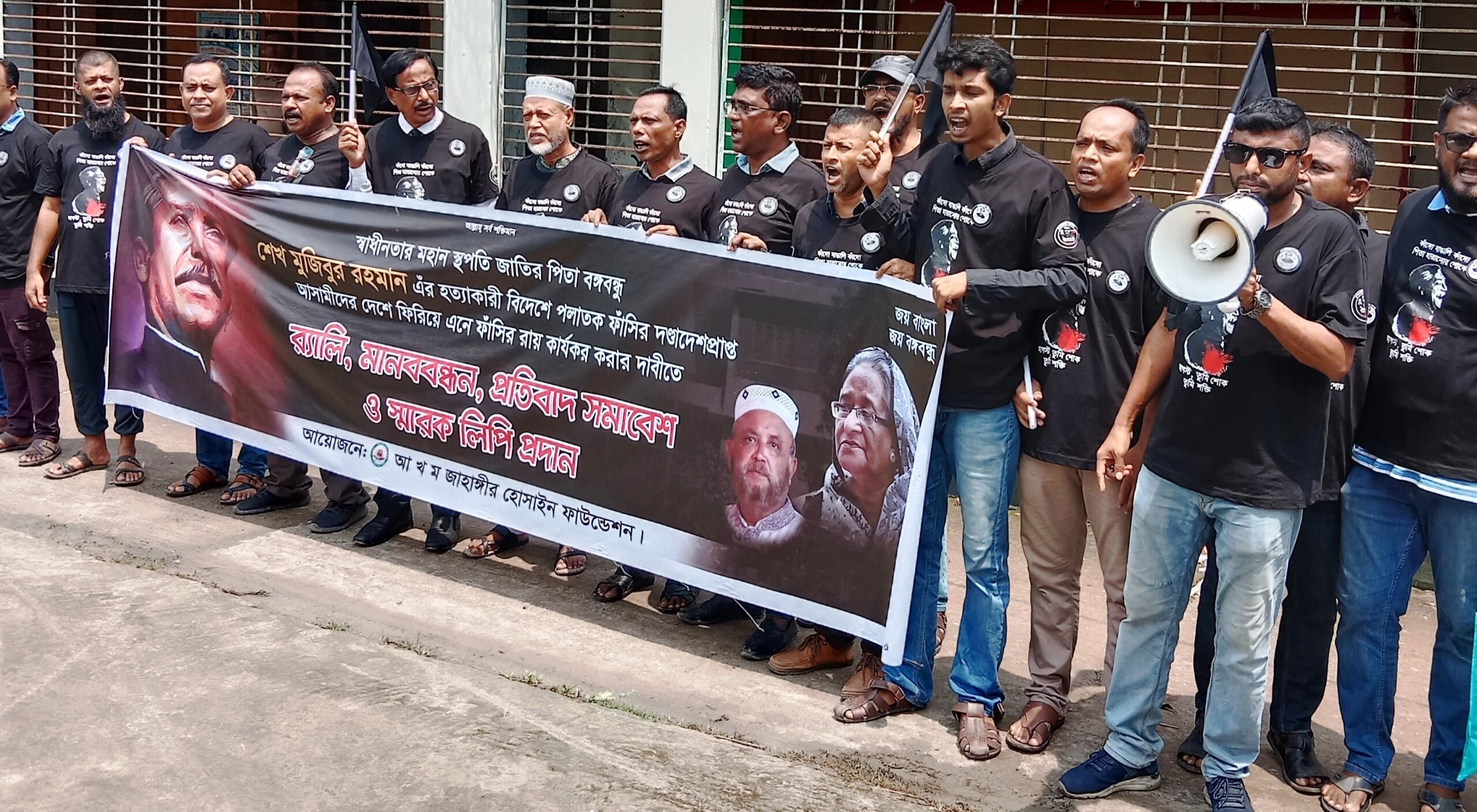 সঞ্জিব দাস, গলাচিপাঃ গলাচিপায় বঙ্গবন্ধুর পলাতক খুনিদের বিচারের দাবিতে মানববন্ধন ও স্মারকলিপি প্রদান করা হয়েছে। উপজেলা আওয়ামী লীগের তথ্য ও গবেষণা বিষয়ক সম্পাদক আ,স,ম জাওয়াদ সুজন বাংলাদেশের স্বাধীনতার স্থপতি জাতির পিতা বঙ্গবন্ধু শেখ মুজিবর রহমান ও সকল শহীদদের হত্যাকারী ও পলাতক যে সমস্ত খুনিরা বিদেশে আত্মগোপন করে আছে, তাদেরকে দ্রæত দেশে এনে খুনির রায় কার্যকর সহ খুনি জিয়া, খন্দকার মোস্তাক সহ সকল ষড়যন্ত্রকারীদের বিচারের দাবিতে সোমবার (২৮ আগস্ট) বেলা ১১ টায় উপজেলা প্রশাসন চত্বর এলাকায় কালো পতাকা নিয়ে শত শত নেতাকর্মী সমর্থকেরা এক মানববন্ধন করেন। মানববন্ধন শেষে উপজেলা নির্বাহী অফিসারের মাধ্যমে স্বরাষ্ট্র সচিব বরাবরে একটি স্মারকলিপি প্রদান করে।