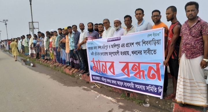 "দেশ বাঁচাও” "দেশ বাঁচাও” এই স্লোগানে মহিপুর বন্দর মৎস্য আড়ৎ ব্যবসায়ী সমবায় সমিতি লিঃ এর আয়োজনে শনিবার (২ সেপ্টেম্বর) বিকেলে শেখ রাসেল সেতুর উপরে এ মানববন্ধন অনুষ্ঠিত হয়।