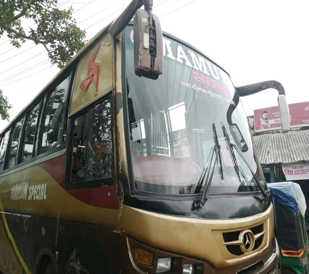ড্রাইভার পনু মিয়া বলেন, তালতলী থেকে যাত্রী বোঝাই করে ঢাকার উদ্দেশ্যে ছেরে নলবুনিয়া নামক স্হানে এলে ১০/১২ জন লোক গাড়ীর গতিরোধ করে আমার কাছে ৫০ হাজার টাকা চাঁদা দাবি করে। আমি টাকা দিতে অস্বীকার করলে তারা গাড়ী ভাংচুর শুরু করে এবং আমাকে ও সুপারভাইজারকে বেদম মারধর করেছে।