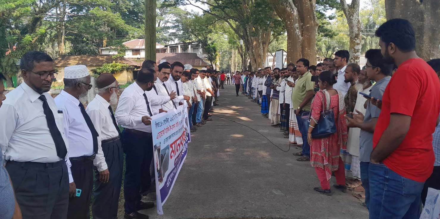 মানববন্ধনে আইনজীবীরা বলেন, আমরা আইনজীবী হয়ে বিচার দাবীতে রাস্তায় নেমেছি। এর চেয়ে জঘন্য আর কি হতে পারে? থানা থেকে এক কিলোমিটার দুরে শিশু কন্যাকে হত্যার চেষ্টা ও ডাকাতির ঘটনার এক মাস পেরিয়ে গেলেও পুলিশের ভুমিকা রহস্যজনক। পুলিশ ঘটনার সাথে জড়িতদের গ্রেপ্তার করতে পারেনি। দ্রæত জড়িতদের গ্রেপ্তার না করলে আমরা কঠোর আন্দোলনে যেতে বাধ্য হব।