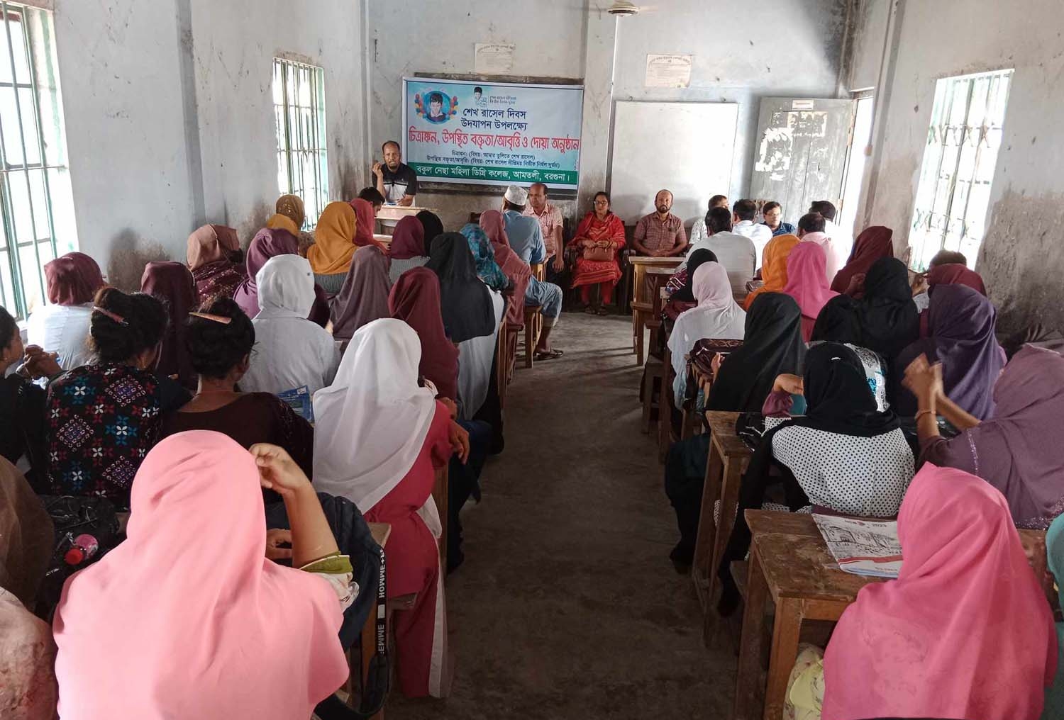 কলেজের অধ্যক্ষ (ভারপ্রাপ্ত) মোছাঃ ফেরদৌসি আক্তারের সভাপতিত্বে আলোচনা সভায় বক্তব্য রাখেন সহকারী অধ্যাপক মিজানুর রহমান, বশির আহম্মেদ, জেষ্ঠ্য প্রভাষক সৈয়দ ওয়ালী উল্লাহ, নাজমুন নাহার, জয়নুল আবেদীন, বানী রানী শীল, কামরুজ্জামান শানু, নাজমুল আহসান, একাদ্বশ শ্রেনীর ছাত্রী জান্নাতি ও বৃষ্টি মজুমদার প্রমুখ। আলোচনা সভা শেষে জাতির জনক বঙ্গবন্ধু শেখ মুজিবুর রহমানসহ ১৫ আগষ্ট ঘাতকদের গুলিতে নিহত সকলের রুহের মাগফেরাত কামনায় দোয়া মোনাজাত করা হয়।