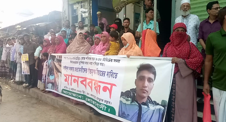 প্রায় ঘন্টাব্যাপী মানববন্ধনে বক্তব্য রাখেন, এলাকাবাসী মো.বাচ্চু গাজী, গাজী মো.ফারুক, মো.সেলিম মুন্সী, বোন মোসা.কোহিনুর বেগম,মোসা. তাজিনুর বেগম, স্ত্রী কাকলী বেগম প্রমুখ।