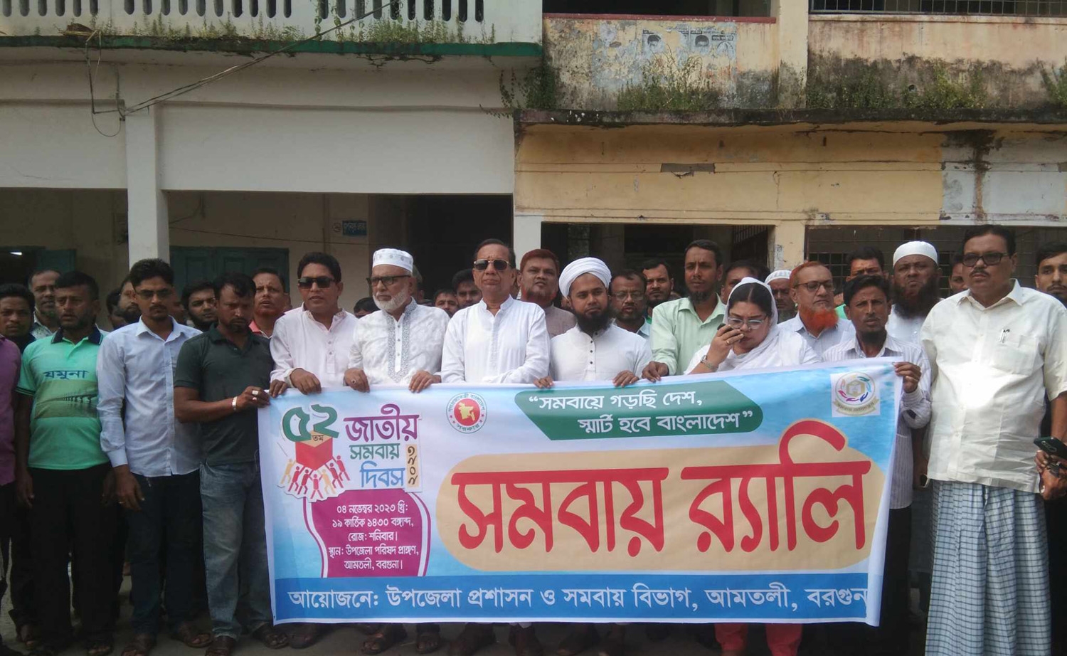 আমতলী প্রতিনিধিঃ “সমবায়ে গড়ছি দেশ, স্মার্ট হবে বাংলাদেশ” এ প্রতিপাদ্য নিয়ে আমতলী উপজেলা প্রশাসন ও সমবায় অধিদপ্তরের উদ্যোগে বিভিন্ন কর্মসুচীর মধ্যে দিয়ে ৫২ তম সমবায় দিবস পালন করা হয়েছে। কর্মসুচীর মধ্য ছিল জাতীয় ও সমবায় পতাকা উত্তোলন, র্যালী ও আলোচনা সভা।
