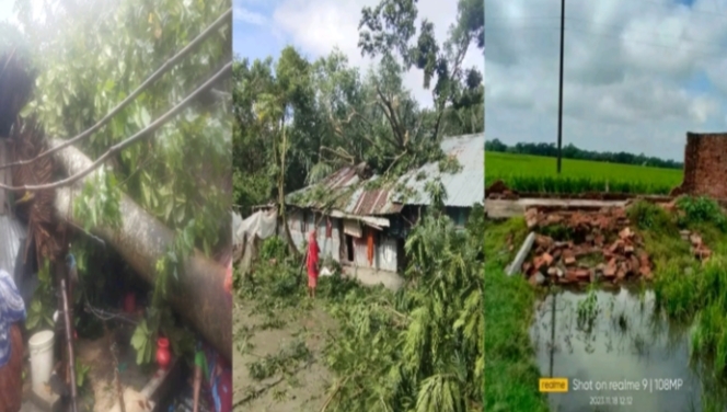 মালিপাড়া এলাকার আনোয়ার হোসেন ও হানিফ ফকির বলেন, বড় একটি চাম্বল গাছ পড়ে আমাদের দুইটি ঘর পুরোপুরি ভেঙে গেছে। একই সাথে এতে রান্নাঘর,গরুর ঘরও বিধ্বস্ত হয়ে গেছে। আমরা রাতে বাহিরে ছিলাম। প্রশাসন থেকে যে সহযোগিতা করেছে তাই দিয়ে রান্না করে কোনো মতে খেয়েছি।