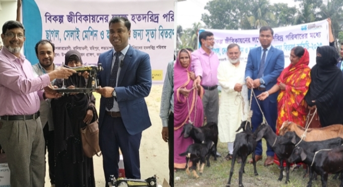 বুধবার (২৯ নভেম্বর) বেলা ১১ টায় উপজেলা পরিষদ মিলনায়তনে পরিবর্তন প্রকল্পের সহযোগিতায় ৪০টি পরিবারের মাঝে ৪০টি সিঙ্গার সেলাই মেশিন ও ১২৪ টি পরিবারে ছাগল বিতরণ করা হয়। উপজেলা প্রাণিসম্পদ কর্মকর্তার মাধ্যমে প্রতিটি ছাগল রোগমুক্ত কীনা তা পরীক্ষা করা হয়। প্রতিটি ছাগল ৭ থেকে ১০ কেজি ওজন মাপের দেওয়া হয়।