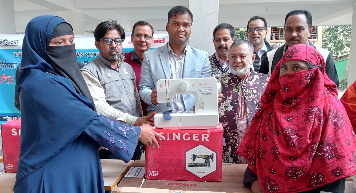 বিধবা ও স্বামী নিগৃহীতা নারীদের জীবিকা উন্নয়নের লক্ষ্যে ধানখালী ইউনিয়নের নারী উদ্যোক্তা মাহমুদা, শাহিদা, মোসাঃ সুখী বেগম, সোমা, রুজিনা এবং আসমা সেলাই মেশিন পেয়েছেন।