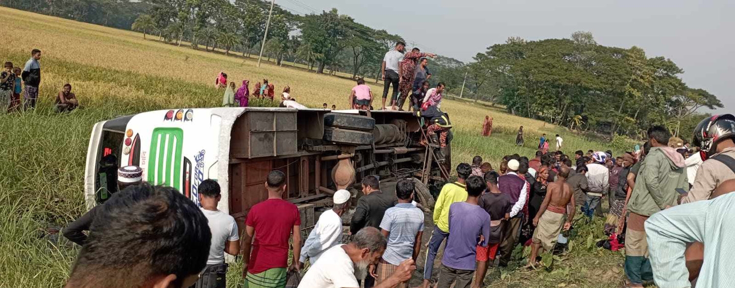 প্রত্যক্ষদর্শী কয়েকজন বলেন, দ্রুত গতির একটি ট্রাকের সঙ্গে বাস গাড়ী ও মাহেন্দ্র গাড়ীর ধাক্কা লাগে। এতে বাস গাড়ী ও মাহেন্দ্র গাড়ী ছিটকে সড়কের পাশে খাদে পড়ে যায়। বাস গাড়ীর হেল্পার গাড়ীর নিচে চাপা পড়ে ঘটনাস্থলে নিহত হয়েছে।