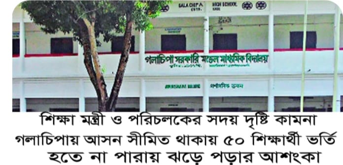 সঞ্জিব দাস, গলাচিপাঃ গলাচিপায় আসন সীমিত থাকায় ৫০ শিক্ষার্থী ভর্তি হতে না পারায় ঝড়ে পড়ার আশংকা দেখা দিয়েছে। জানা যায় চলতি বছরে গলাচিপা সরকারি মডেল মাধ্যমিক বিদ্যালয়ে ৬ষ্ঠ শ্রেণিতে ভর্তির জন্য আবেদন করেন উপজেলার বিভিন্ন স্কুলের শিক্ষার্থীরা। কিন্তু বিদ্যালয়টিতে ১১০টি আসন থাকায় ৫০ শিক্ষার্থী এখনও ভর্তি হতে পারে নি। তাদেরকে অপেক্ষমান তালিকায় রাখা হয়েছে। অন্য কোন স্কুলে আবেদন না করায় ৫০ শিক্ষার্থী লটারী ব্যবস্থা ও সীমিত আসন ব্যবস্থার প্রতি আস্থা হারিয়ে ফেলেছে। ফলে অভিভাবক মহল ও শিক্ষার্থীরা হতাশ প্রকাশ করেছে। অভিভাবকদের এখন দুশ্চিন্তার কারণ তাদের সন্তানরা এখন ঝড়ে পরবে। পড়ালেখার প্রতি অনাস্থা তৈরি হবে। এখনও ভর্তি হতে পারেনি বলে ক্ষোভ প্রকাশ করেছেন অভিভাবকরা।