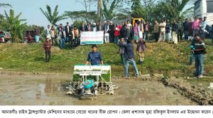 আমতলী প্রতিনিধিঃ আমতলী উপজেলা কৃষি অফিসের উদ্যোগে প্রথম রাইস ট্রান্সপ্লান্টার মেশিনের মাধ্যমে সমলয় বোরো ধানের বীজ রোপনের উদ্বোধন করা হয়েছে। বরগুনা জেলা প্রশাসক মুহাঃ রফিকুল ইসলাম মঙ্গলবার দুপুরে উপজেলার দক্ষিণ আমতলী গ্রামের কৃষক আব্দুল মান্নানের জমিতে এ বীজ রোপনের উদ্বোধন করেছেন। এ নতুন প্রযুক্তির মাধ্যমে বীজ রোপনের দৃশ্য দেখতে শত শত কৃষক দক্ষিণ আমতলী গ্রামে ভীড় জমায়।