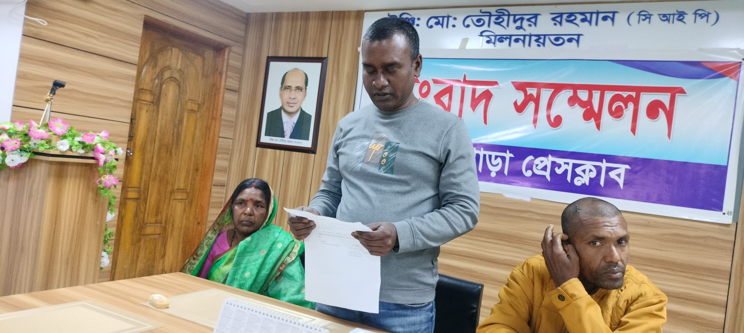 সংবাদ সম্মেলনে মনোতোষ পাইকের পক্ষে লিখিত বক্তব্য পাঠ করেন মানস সরকার। লিখিত বক্তব্যে বলেন, আমি একজন গরীব কৃষক নিজের জমি যায়গা না থাকায় অপরের জমি বড়গা কিংবা একসনা রাখিয়া হালুটি করিয়া সংসার চালাই। চলতি বছরে আমার বাড়ীর সামনে কলাপাড়া শ্রী শ্রী মদন মোহন সেবা আশ্রয়ের প্রায় ৩ (তিন) কানি জমি আছে যাহার রক্ষনা বেক্ষন এর দায়িত্ব স্থানীয় মানস সরকার। আমি সহ আরো অপর ৫ জন গরীব কৃষকরা প্রায় ১৮ বছর উক্ত জমি ধানকড়ালি হিসাবে রাখিয়া চাষাবাদ করি। আশ্রমের জমি ও উত্তম হালদার, মিলন হালদার, সঞ্জয় হালদার, দীপক হালদার, দিলিপ হালদার, সঞ্জিব হালদার জমি পাশাপাশি থাকায় তাদের স্বার্থ উদ্ধার করার হীন উদ্দেশ্যে গত ২ বছর পূর্বে আশ্রম কর্তৃপক্ষকে না জানাইয়া গভীর রাতে বেকু মেশিন দ্বারা মাটি কাটিয়া নেয়। জমি মধ্যখানে একটি ডোবা আছে তারা ঐ খাল গভীর করে মাছ ধরে। আমাদের জমির মধ্যে তাদের ডোবার পানি ফালায়, তাদের মাছ ধরা শেষ হইলে ডোবার বাদ কাটিয়া আমাদের জমির ডোবার মাছ নিয়ে যায়। গত ৩১ জানুয়ারি রাত দশটার দিকে আমরা এ কাজে বাধা নিষেধ করলে তারা হাতে লাঠি, লোহাড় রড লাঠি নিয়া আমাকে মারপিট করে আমার মাথায় গুরতর জখম করে। আমি ডাক-চিৎকার করলে স্থানীয়রা আমাকে তাদের হাত থেকে উদ্ধার করে কলাপাড়া হাসপাতালে চিকিৎসার জন্য ভর্তি করে। আমার মাথায় ৩/৪টি সেলাই লেগেছে। পরবর্তীতে আমাকে হয়রানী করার জন্য মিলন হালদার তার মাথায় নিজেরা ব্লেড দিয়া আঘাত দেখাইয়া হাসপাতালে ভর্তি হয়। পরবর্তীতে তারা বরিশালে রেফার হয়ে বাদীর বিরুদ্ধে মিথ্যা মামলা দিয়া হয়রানী করার প্রচেষ্টায় লিপ্ত আছে। প্রতিপক্ষ গৌতম হালদারের এক ভাই পুলিশ সদস্য হওয়ায় তারা সব সময় ভয়ভীতি দেখায়।