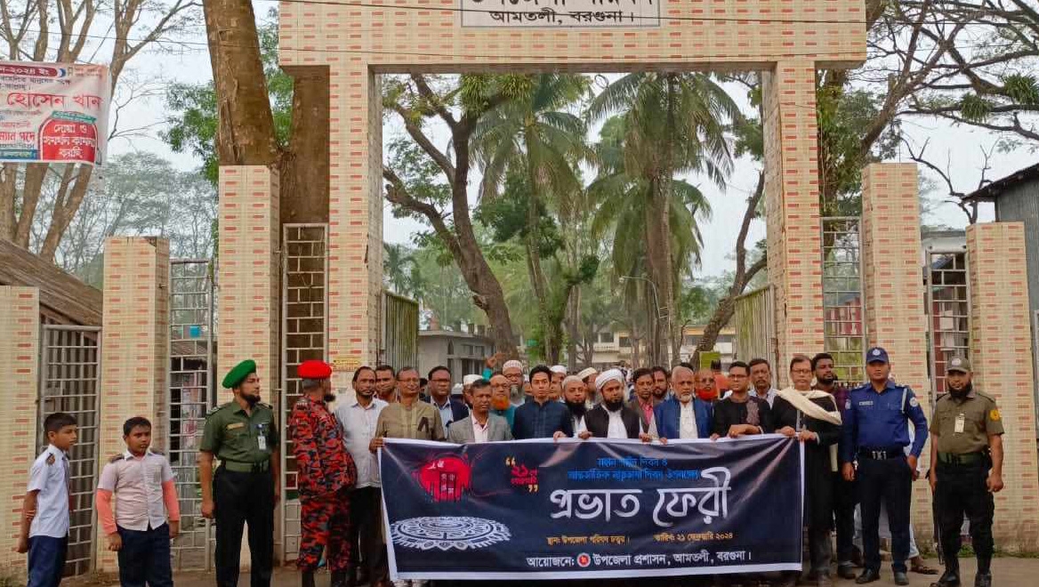 আর্ন্তজাতিক মাতৃভাষা দিবস ও শহীদ দিবস উদযাপন উপলক্ষে রাত ১২.১ মিনিটে আমতলী সরকারী কলেজ প্রাঙ্গণের শহীদ মিনারে উপজেলা প্রশাসন, আওয়ামীলীগ, যুবলীগ, ছাত্রলীগ, সাংবাদিক ইউনিয়ন, প্রেসক্লাব ও বিভিন্ন শিক্ষা প্রতিষ্ঠান পুস্পস্তবক অর্পণ করেছেন। বুধবার সকালে প্রশাসনের উদ্যোগে প্রভাতভেরী অনুষ্ঠিত হয়। প্রভাতভেরীতে উপজেলা প্রশাসন, আওয়ামীলীগ ও বিভিন্ন শিক্ষাপ্রতিষ্ঠানের শিক্ষকরা অংশ নেয়। পরে বেলা ১১ টায় উপজেলা প্রশাসনের উদ্যোগে উপজেলা পরিষদ মিলনায়তনে আলোচনা সভা অনুষ্ঠিত হয়। ইউএনও মুহাম্মদ আশরাফুল আলমের সভাপতিত্বে আলোচনা সভায় প্রধান অতিথি ছিলেন উপজেলা পরিষদ চেয়ারম্যান বীর মুক্তিযোদ্ধা এমএ কাদের মিয়া।