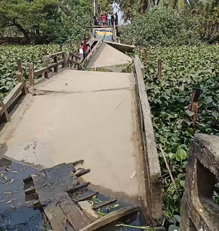 মো.নাহিদুল হকঃ কলাপাড়ায় সাধুর ব্রিজ ভেঙে যাওয়ায় চরম ভোগান্তিতে পড়েছে পর্যটক সহ পাঁচ গ্রামের মানুষ। উপজেলার লতাচাপলী ইউনিয়নের মম্বিপাড়া গ্রামের বড়হরপাড়া খালের ওপর নির্মিত আয়রন ব্রিজটি সম্পূর্ণ ভেঙে খালে পড়ে গেছে। রবিবার বেলা ১১টার দিকে মালবাহী ট্রাক পার হওয়ার সময় ব্রিজটি ভেঙে যায়। স্থানীয়দের কাছে এটি সাধুর ব্রীজ নামে পরিচিত।