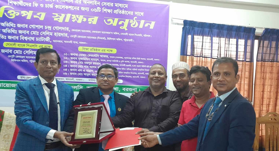 বুধবার বিকেলে বকুলনেছা মহিলা ডিগ্রী কলেজ, চাওড়া কারিগড়ি ও কৃষি কলেজ, আমতলী সরকারী একে মাধ্যমিক বিদ্যালয়, মফিজ উদ্দিন বালিকা মাধ্যমিক বিদ্যালয়, মফিজ উদ্দিন মাধ্যমিক বিদ্যালয় ও ঘটখালী মাধ্যমিক বিদ্যালয়ের শিক্ষার্থীদের অনলাইন সেবার আওতায় আনতে চুক্তিপত্র স্বাক্ষর হয়। আমতলী সোনালী ব্যাংক শাখার ব্যবস্থাপক বিশ্বনাথ চ্যাটার্জীর সভাপতিত্বে অনুষ্ঠানে প্রধান অতিথি ছিলেন বরিশাল জেনারেল ম্যাজেনার গোপাল চন্দ্র গোলদার। বিশেষ অতিথি ছিলেন পটুয়াখালী ডিপুটি জেনারেল ম্যানেজার সেলিম হায়দার। ব্যবস্থাপক জুলকার বিন খালেদের সঞ্চালনায় সভায় বক্তব্য রাখেন বকুলনেছা মহিলা কলেজের সহকারী অধ্যাপক প্রনব কুমার সরকার, অধ্যক্ষ সুজা উদ্দিন মাহমুদ, প্রধান শিক্ষক বজলুর রহমান, শাহ আলম কবির, এমএ হান্নান, আবুল কাসেম ও আমতলী সাংবাদিক ইউনিয়ন সাধারণ সম্পাদক মোঃ হোসাইন আলী কাজী প্রমুখ।