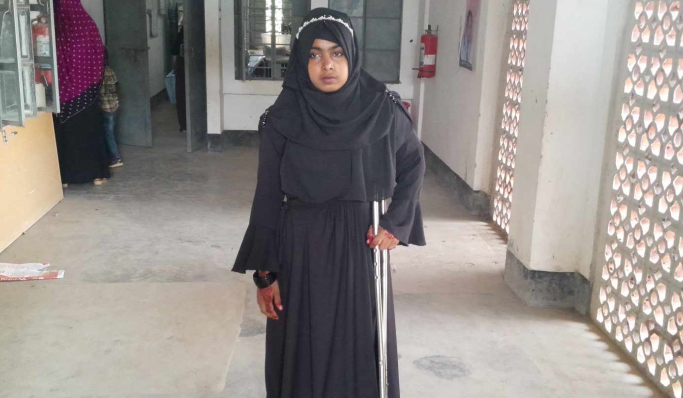 আখিনুরের বাবা আলী আকবর মুসুল্লী বলেন, জন্ম থেকেই আমার মেয়ের একটি পা নেই। পা না থাকলে হবে কি? নানা গুনে গুনাম্বিত আমার মেয়ে। অনেক কষ্ট করে লেখা পড়া করছে। জীবন চলতে লাঠিই ওর ভরসা।