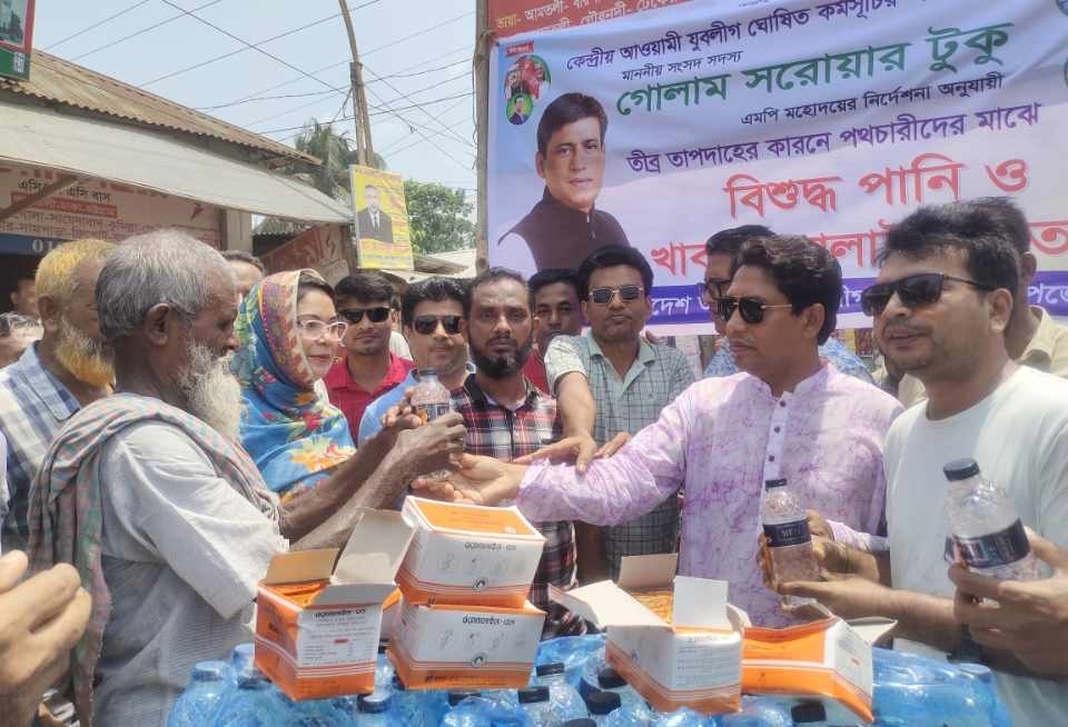 জানাগেছে, বাংলাদেশ আওয়ামীলী যুবলীগ কেন্দ্রিয় কমিটির নির্দেশক্রমে বরগুনা-১ আসনের সাংসদ গোলাম সরোয়ার টুকুর উদ্যোগে উপজেলা যুবলীগ তৃষ্ণার্ত মানুষের মধ্যে খাবার স্যালাইন ও সুপেয় পানি বিতরন করা হয়। এ কার্যক্রমের উদ্বোধন করেছেন উপজেলা আওয়ামীলীগ সাধারণ সম্পাদক জিএম ওসমানী হাসান।