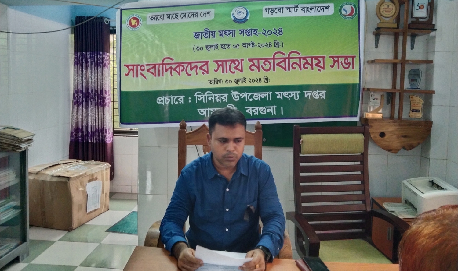 আমতলী প্রতিনিধিঃ “ভরবো মাছে মোদের দেশ, গড়বো স্মার্ট বাংলাদেশ” এ প্রতিপাদ্য নিয়ে আমতলী উপজেলা প্রশাসন ও মৎস্য দপ্তরের আয়োজনে সাংবাদিকদের সঙ্গে মতবিনিময় সভা অনুষ্ঠিত হয়েছে। মঙ্গলবার জাতীয় মৎস্য সপ্তাহ উপলক্ষে মেরিন ফিসারিজ অফিসার এসএম ফারাহ এ মতবিনিময় সভা করেন।