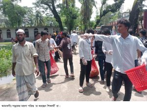 অপর দিকে বৈষম্য বিরোধী ছাত্র আন্দোলনের আমতলী উপজেলার শিক্ষার্থীরা উপজেলা সড়কের রাস্তার ময়লা আবর্জনা পরিস্কার করছেন।