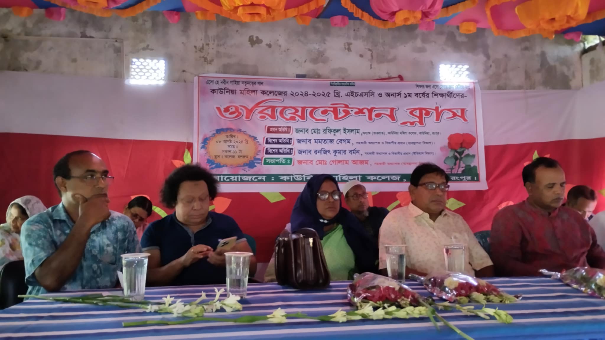 জে এইচ সোহাগ, কাউনিয়া রংপুর প্রতিনিধিঃ রংপুরের কাউনিয়ায় স্বনামধন্য বিদ্যাপীঠ কাউনিয়া মহিলা কলেজে ২০২৪-২৫ ইং শিক্ষাবর্ষে একাদশ শ্রেণীর ওরিয়েন্টেশন ক্লাস বৃহস্পতিবার (০৮ আগষ্ট) বেলা ১১টায় কলেজ হলরুমে অনুষ্ঠিত হয়েছে।