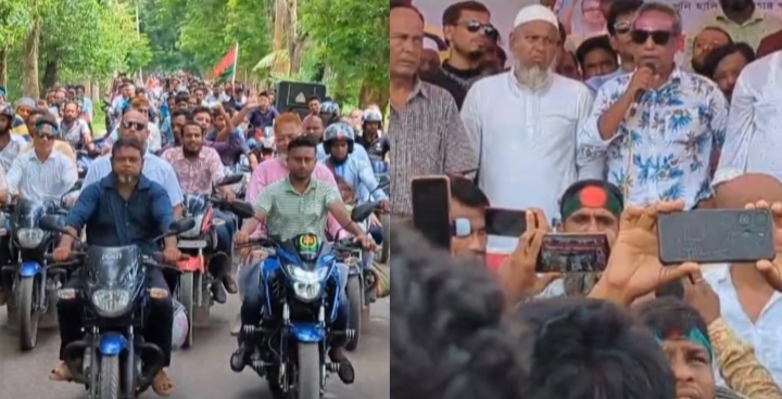 এসময় উপজেলা বিএনপির আহবায়ক জব্বার মৃধার সভাপতিত্বে ও সদস্য সচিব আপেল মাহমুদ ফিরোজ এর সঞ্চালনায় প্রধান অতিথির বক্তব্য রাখেন বিএনপির কেন্দ্রীয় কমিটির সহ-দপ্তর সম্পাদক মুনির হোসেন। এরআগে মুনির হোসেনের আগমন উপলক্ষে দুইশতাধিক মোটরসাইকেলের শোভাযাত্রা নিতে তাকে বরণ করেন স্থানীয় বিএনপি নেতা-কর্মীরা। শোভাযাত্রাটি বিভিন্ন ইউনিয়ন ঘুরে অবস্থান কর্মসূচির মঞ্চে এসে শেষ হয়।