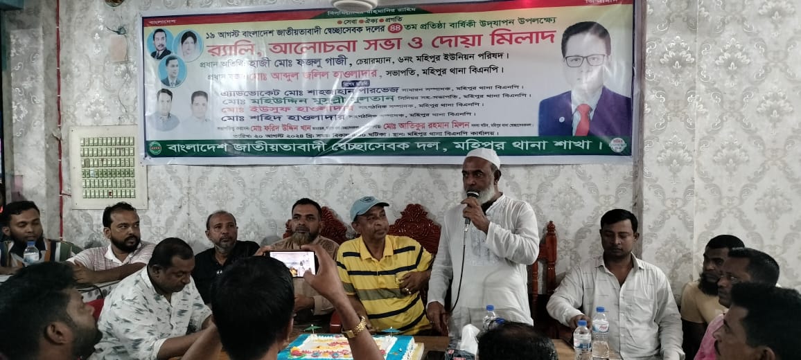 মো. সাইদুর রহমানঃ মহিপুরে বাংলাদেশ জাতীয়তাবাদী স্বেচ্ছাসেবক দলের ৪৪তম প্রতিষ্ঠাবার্ষিকী পালিত হয়েছে।