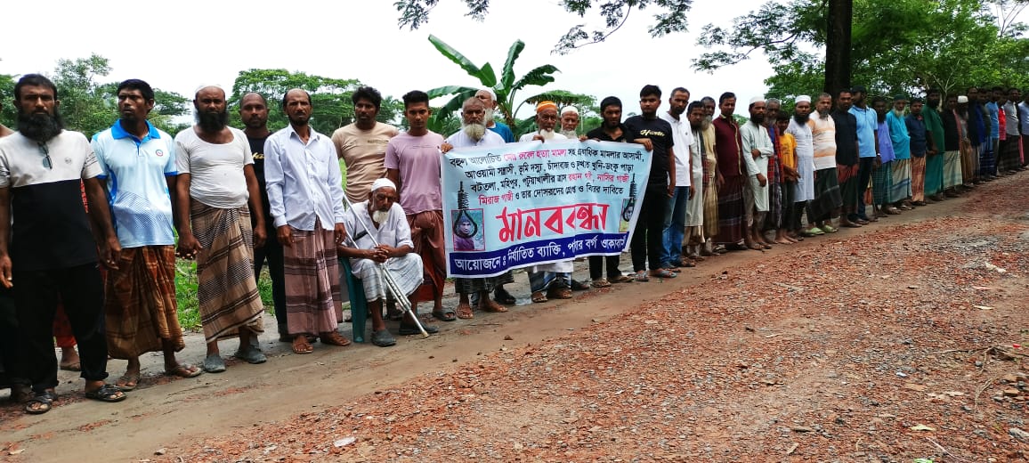 বুধবার (২১ আগষ্ট) মহিপুর থানার লতাচাপলী ইউনিয়নের ডংকুপাড়া বটতলা এলাকায় ভুক্তভোগী পাঁচ শতাধিক মানুষ মানববন্ধনে অংশ গ্রহণ করেন।