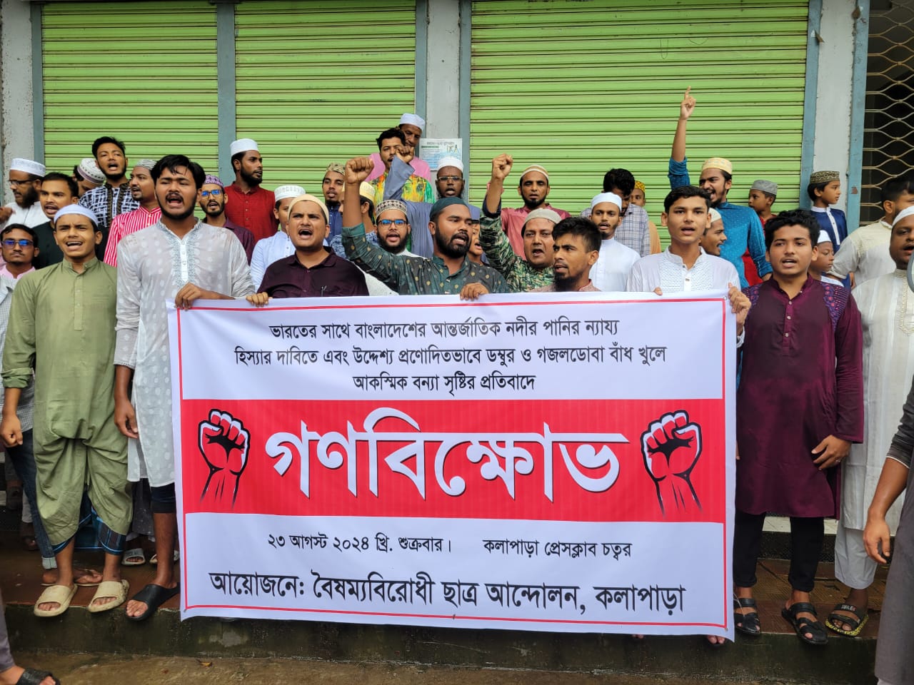 বৈষম্যবিরোধী ছাত্র আন্দোলন কলাপাড়ার সদস্য আল ইমরান বলেন, ভারত বাংলাদেশকে কখনও বন্ধু রাষ্ট্র মনে করেনি, তারা বাংলাদেশের একটি বিশেষ দলকে ক্ষমতায় বসিয়ে তাদের দিয়ে এই বাংলাদেশকে শোষণ করতে চেয়েছে, এই বাংলাদেশকে আরেকটি সিকিম করতে চেয়েছে। বাংলাদেশের ছাত্র-জনতা সেই চক্রান্ত রুখে দিয়েছে। বক্তারা বাংলাদেশের স্বাধীনতার পর থেকে ভারতীয় পানি আগ্রাসনের তীব্র নিন্দা ও প্রতিবাদ জানান।
