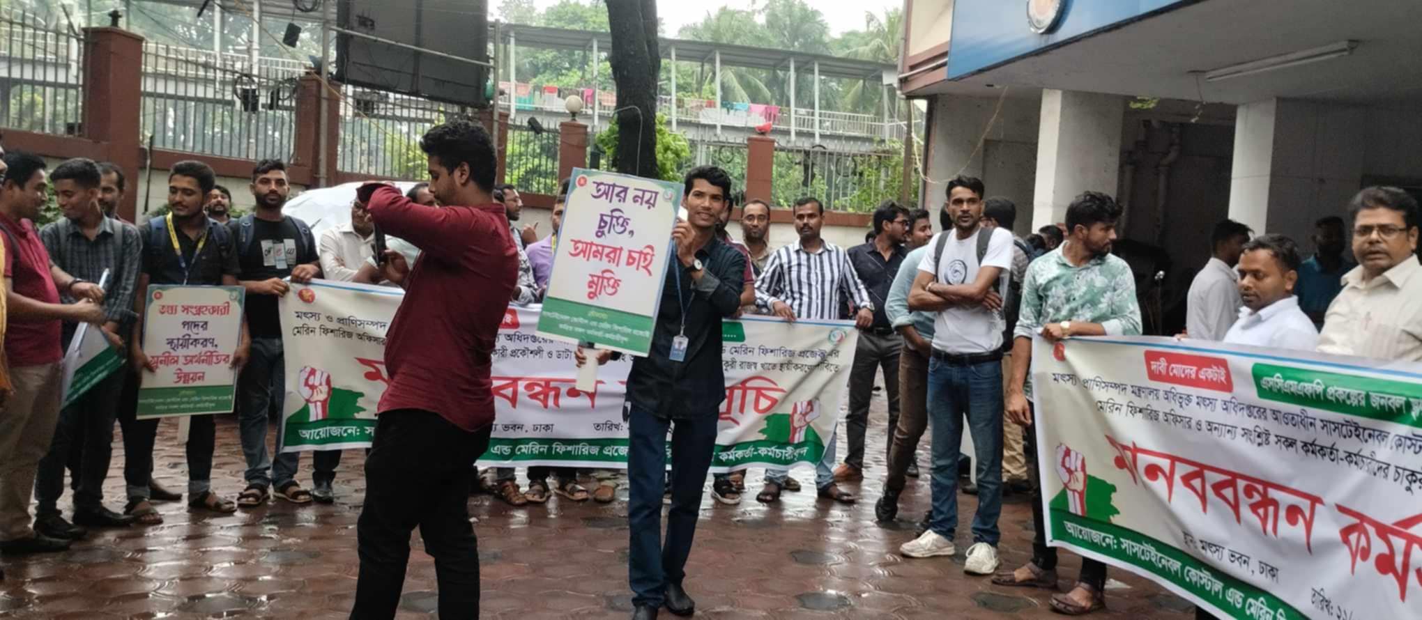 "সাসটেইনেবল কোস্টাল এন্ড মেরিন ফিশারিজ প্রকল্প কম্পোনেট -৩" এর তথ্য সংগ্রহকারী সহ- ৩৯১ জন (বিভিন্ন ক্যাটাগরিতে) কর্মকর্তা ও কর্মচারীদের স্হায়ী রাজস্ব করনের পক্ষে সুপারিশ করে মৎস্য অধিদপ্তরের সম্মানিত এ্যাডমিন স্যার কাছে হস্তান্তর করলে সম্মানিত এ্যাডমিন স্যার ও উক্ত স্মারকলিপিতে প্রকল্পটি (স্হায়ী) ও রাজস্ব করনের জন্য সুপারিশ করেন। এবং তা চূড়ান্ত ভাবে সুপারিশ করার জন্য নিজ হাতে মৎস্য ও প্রানি সম্পদ অধিদপ্তরের (ডিজি) মহাপরিচালক, মোঃজিল্লুর রহমানের কাছে সুপারিশ করার জন্য সৎ ইচ্ছা ব্যক্ত করেন এবং তার আন্তরিক সহযোগিতা কামনা করছেন। অধিদপ্তরের সরকারি দায়িত্ব পালন কালের সংকীর্ণতা এবং উক্ত মৎস্য ও প্রানি সম্পদ মন্ত্রণালয়ের উর্ধতন কর্মকর্তা ও কর্মচারীদের সাথে উক্ত প্রকল্পটির ব্যাপারে একান্ত মত বিনিময়ের জন্য উক্ত দপ্তরের ডিজি জিল্লুর রহমান উক্ত "সাসটেইনেবল কোস্টাল এন্ড মেরিন ফিশারিজ প্রকল্প কম্পোনেট -৩" এর সমন্বয় সহ উক্ত প্রকল্পের (পিডি) জিয়া হায়দার চৌধুরী, উক্ত অধিদপ্তরের প্রশাসক সহ উর্ধতন কর্মকর্তা ও কর্মচারীদের কাছ থেকে ০২ দিনের সময় নেন, তবে তিনি "সাসটেইনেবল কোস্টাল এন্ড মেরিন ফিশারিজ প্রকল্প কম্পোনেট -৩" এর আওতাধীন (৩৯১) জন্য কর্মকর্তা ও কর্মচারীদের হতাশ হবার কিছু নেই, এবং তিনি আরও বলেন, আগামী রবিবার তিনি মন্ত্রণালয়ের উর্ধতন কর্মকর্তা ও কর্মচারীদের সাথে মত বিনিময় করে চূড়ান্ত স্মারকলিপিতে সুপারিশ করে "সাসটেইনেবল কোস্টাল এন্ড মেরিন ফিশারিজ প্রকল্প কম্পোনেট -৩ "কে মন্ত্রণালয়ের (মহাসচিব) উক্ত প্রকল্পকে স্হায়ীকরন রাজস্বে স্হানান্তর করার জন্য চূড়ান্ত অনুমোদন ও গেজেট আকারে প্রকাশ করার জন্য অনুরোধ করবেন বলে "সাসটেইনেবল কোস্টাল এন্ড মেরিন ফিশারিজ প্রকল্প কম্পোনেট -৩"এর কর্মকর্তা ও কর্মচারীদের সমন্বয়কদের একান্ত আলাপ চারিতায় মাধ্যমে আসস্ত করেন। এবং তিনি নিজে ও শান্তিপূর্ণ অবস্থান কর্মসূচি পালনকারীদের স্বাধুবাদ জানান। মৎস্য ও প্রানি সম্পদ অধিদপ্তরের সম্মানিত ডিজি মহাপরিচালক মোঃ জিল্লুর রহমানের আন্তরিকতায় মুগ্ধ হয়ে, উক্ত "সাসটেইনেবল কোস্টাল এন্ড মেরিন ফিশারিজ প্রকল্প কম্পোনেট -৩" এর সমন্বয়রা উক্ত অবস্থান কর্মসূচিতে অংশ গ্রহনকারী কর্মকর্তা ও কর্মচারীদের আপাতত ধৈর্য ও বিনয়ের সহিত আগামী ২৫/০৮/২০২৪ ইং তারিখ রবিবার বিকাল ৫ টা পর্যন্ত দেশের দুর্যোগ কালীন দিকের বিবেচনা করে শান্ত ও সুষ্ঠ ভাবে কর্মস্থলে ফিরে যাবার জন্য অনুরোধ করেন, এবং তারা তাদের অবস্থান কর্মসূচি প্রাথমিক ভাবে প্রত্যাখ্যান করেন, এবং অধিদপ্তর থেকে শান্তিপূর্ণ ভাবে কর্মস্থলে ফিরে আসেন।