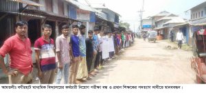 আমতলী প্রতিনিধিঃ বগীরহাট মাধ্যমিক বিদ্যালয়ের প্রধান শিক্ষক মোঃ ইদ্রিসুর রহমানের বিরুদ্ধে তিনজন কর্মচারী নিয়োগে ঘুষ গ্রহনের অভিযোগ উঠেছে। এ নিয়োগ বন্ধ ও প্রধান শিক্ষকের পদত্যাগ দাবীতে মানববন্ধন ও বিক্ষোভ মিছিল করেছে বিদ্যালয়ের শিক্ষার্থী, অভিভাবক, এলাকাবাসী ও ভুক্তভোগীরা। বৃহস্পতিবার দুপুওে বরগুনার তালতলী উপজেলার বগীরহাট মাধ্যমিক বিদ্যালয় সংলগ্ন সড়কে ঘন্টাব্যাপী এ মানববন্ধন ও বিক্ষোভ মিছিল অনুষ্ঠিত হয়।