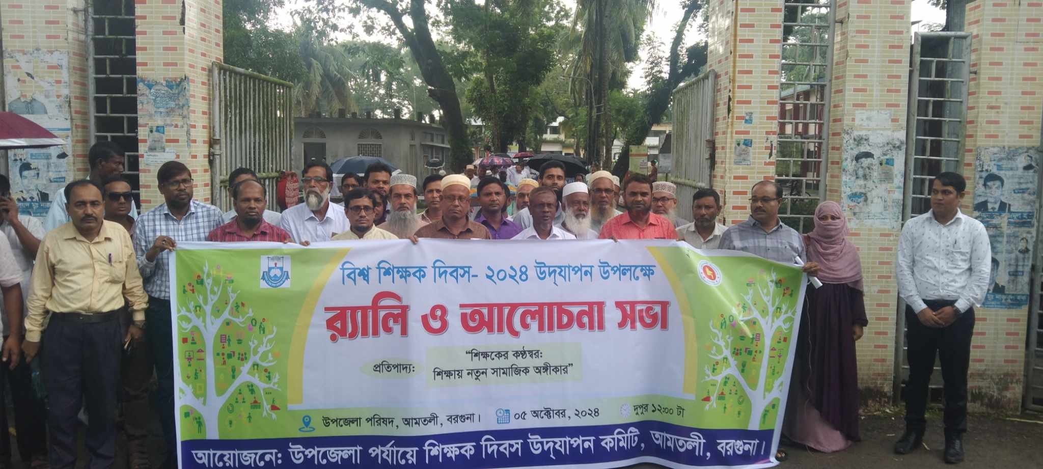আমতলী প্রতিনিধিঃ বরগুনার আমতলীতে বিশ্ব শিক্ষক দিবস উদযাপন উপলক্ষে র্যালি ও আলোচনা সভা অনুষ্ঠিত হয়েছে। শনিবার দুপুরে শিক্ষক দিবস উদ্যাপন কমিটির আয়োজনে র্যালি উপজেলা পরিষদ চত্বর থেকে শুরু হয়ে শহরের প্রধান প্রধান সড়ক প্রদক্ষিণ শেষে উপজেলা পরিষদ হলরুমে আলোচনা সভা অনুষ্ঠিত হয়। উপজেলা মাধ্যমিক শিক্ষা অফিসার মো. অলি আহাদের সভাপতিত্বে আলোচনা সভায় প্রধান অতিথি হিসেবে উপস্থিত ছিলেন উপজেলা নির্বাহী অফিসার ( ভারপ্রাপ্ত) মো. তারেক হাসান।
