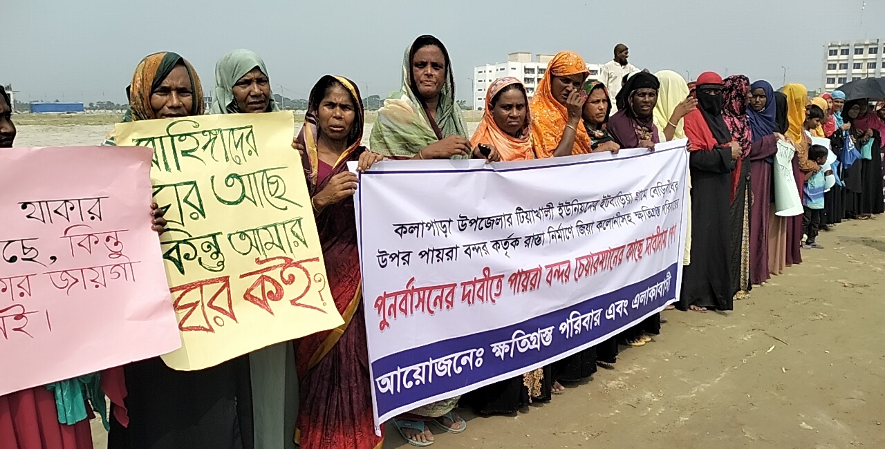 ইতিপূর্বে ক্ষতিগ্রস্থ পরিবারগুলো কলাপাড়া প্রেসক্লাব চত্বরে বিশাল মানববন্ধন করে পুনর্বাসনের দাবী জানান। পরবর্তীতে পুনর্বাসনের জন্য উপজেলা নির্বাহী কর্মকর্তা কাছে আবেদন করেছে। উপজেলা নির্বাহী কর্মকর্তা'র সাথে বারবার আলোচনা করার পরও কোন সমাধান হয়নি। কোন সমাধান না করেই তাদের উচ্ছেদ করা হচ্ছে।