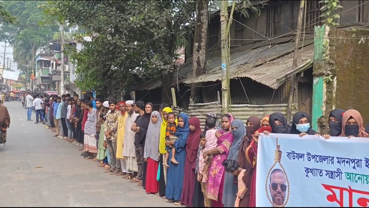উত্তম কুমার, বাউফলঃ বাউফলে চতুর্থ শ্রেণিতে পড়ুয়া এগারো বছরের এক কন্যা শিশুকে যৌন নির্যাতনের ঘটনায় অভিযুক্ত উপজেলার মদনপুরা ইউনিয়ন মৎসজীবী দলের (সদ্য অব্যাহতিপ্রাপ্ত) সভাপতি। নেতার সর্বোচ্চ শাস্তি ফাঁসি ও গ্রেফতারের দাবিতে মানববন্ধন কর্মসূচি পালন করেছে এলাকাবাসী। বৃহস্পতিবার (১৭ অক্টোবর) সকালে বাউফল প্রেসক্লাবের সামনে উপজেলার সচেতন নাগরিক সমাজের ব্যানারে অনুষ্ঠিত মানববন্ধনে শিক্ষার্থী, এলাকাবাসীসহ নানা শ্রেণী পেশার মানুষ অংশগ্রহণ করেন।