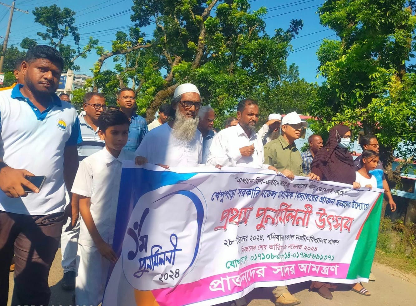 শোভাযাত্রা শেষে পুনর্মিলনী সফল করতে সকলের প্রতি আহবান জানিয়ে সংক্ষিপ্ত বক্তব্য রাখেন ঢাকার অগ্রণী স্কুল অ্যান্ড কলেজের প্রাক্তন অধ্যক্ষ শহীদুল ইসলাম বিশ্বাস, প্রথম পুনর্মিলনী উদযাপন কমিটির যুগ্ম আহ্বায়ক নাসির তালুকদার, সদস্য সচিব মো. রেজাউল করিম বাবলা, খেপুপাড়া সরকারি মডেল মাধ্যমিক বিদ্যালয়ের প্রধান শিক্ষক মো. আবদুর রহিম।