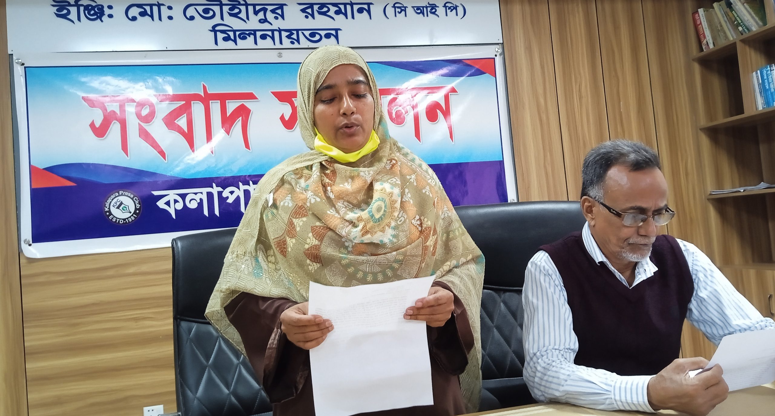 সোমবার সকাল সাড়ে ১১ টায় কলাপাড়া প্রেসক্লাবে সংবাদ সম্মেলনে লিখিত বক্তব্যে এ অভিযোগ করেন বিএনপি নেতা হেলাল খানের স্ত্রী সাবেক ইউপি সদস্য সাবেরা আক্তার কনিকা।