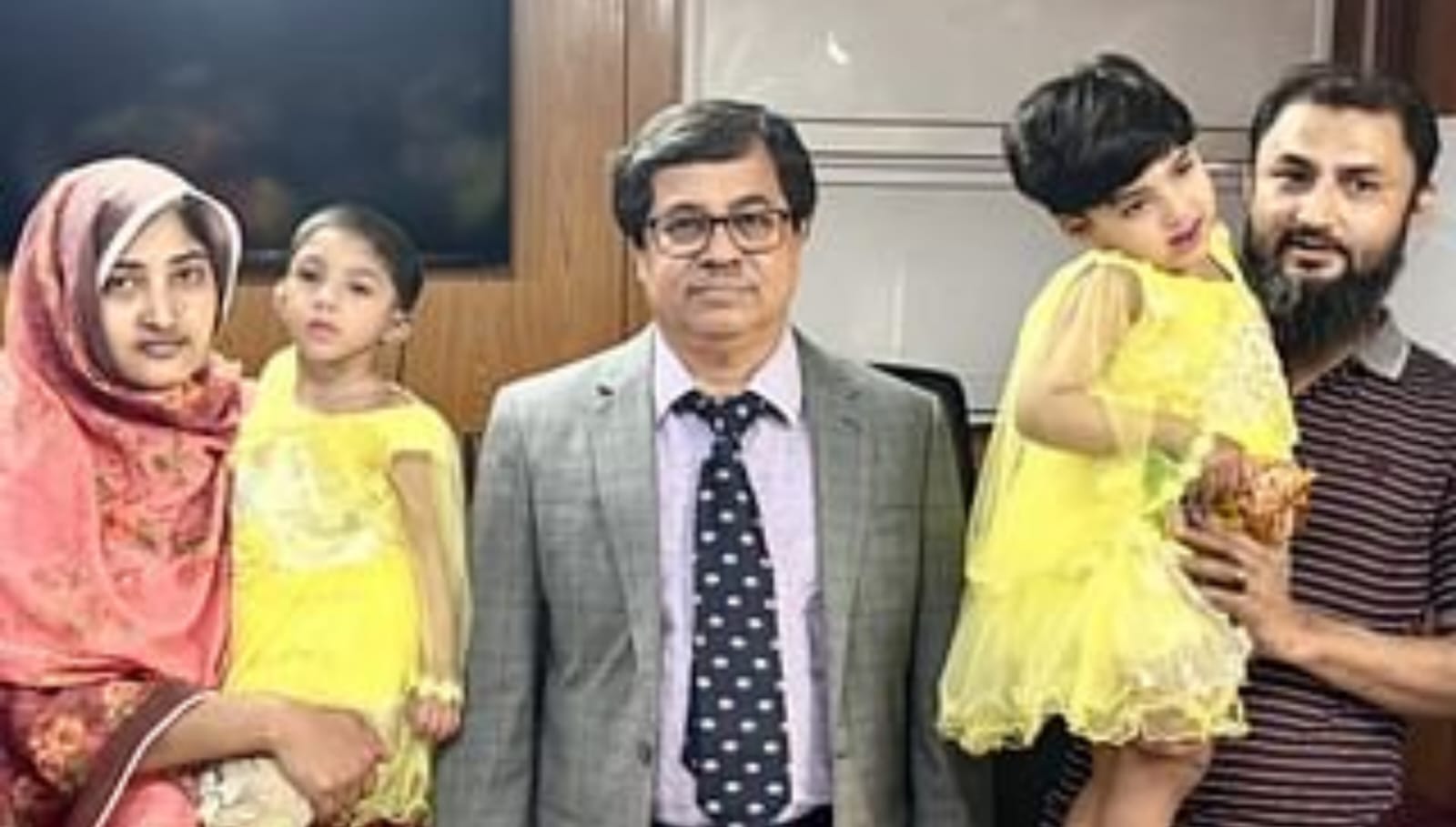মো. বেল্লাল হাওলাদারঃ কুড়িগ্রামের নিম্ন মধ্যবিত্ত পরিবারের নাসরিন আক্তারের গর্ভে জন্মগ্রহণ করে পিঠের নিম্নাংশে মেরুদণ্ড জোড়া লাগানো অবস্থায় ফুটফুটে দুই বোন নুহা ও নাবা। তাদের শরীরের পেছন ও নিচের দিকে থেকে যুক্ত ছিল তারা। তাদের জন্মের পরপরই বিএসএমএমইউর প্রখ্যাত নিউরোসার্জনস ডা. মোহাম্মদ হোসেন কুড়িগ্রামে গেলে সেখানকার চিকিৎসকরা মেরুদণ্ড জোড়া লাগা এই শিশুদের বিষয়ে তাঁকে জানালে তিনি শিশু দুটিকে দেখতে যান। পরে শিশুদের উন্নত চিকিৎসার জন্য ঢাকাতে আসতে বলেন। ১৪ দিন বয়সের শিশু দুটির মা-বাবা তাদের ঢাকাতে নিয়ে আসলে বিএসএমএমইউর প্রখ্যাত নিউরোসার্জনস ও স্পাইনাল নিউরোসার্জারি ডিভিশন প্রধান অধ্যাপক ডা. মোহাম্মদ হোসেনের অধীনে বিএসএমএমইউ-তে অস্ত্রোপচারের মধ্যমে তাদের দুজনের শরীর আলাদা করার উদ্যোগ নেওয়া হয়।