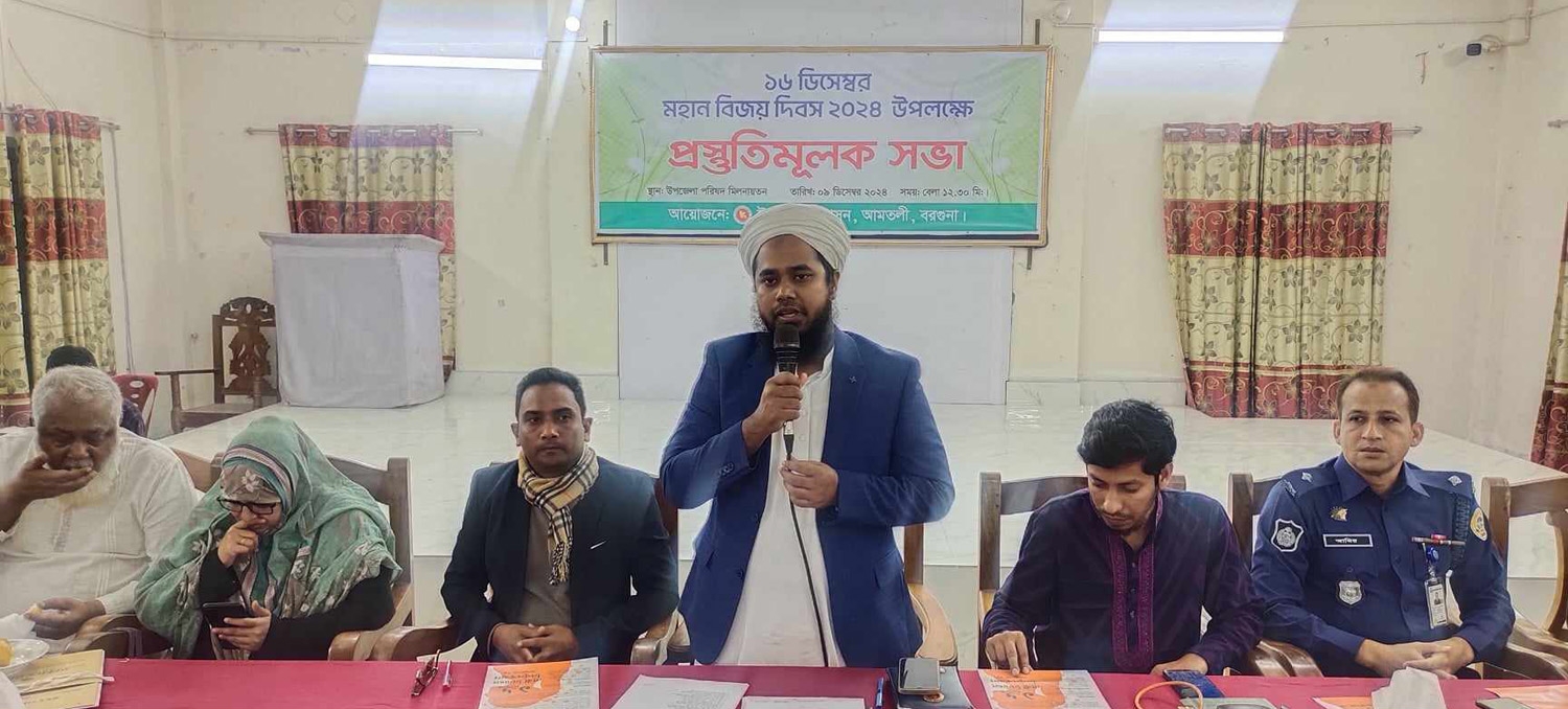 আমতলী প্রতিনিধিঃ মহান বিজয় দিবস উদযাপন উপলক্ষে আমতলী উপজেলা প্রশাসনের উদ্যোগে প্রস্তুতি মুলক সভা অনুষ্ঠিত হয়েছে। সোমবার দুপুরে উপজেলা পরিষদ মিলনায়তনে এ সভা অনুষ্ঠিত হয়।