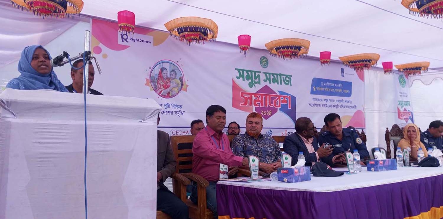 সমুদ্র সমাজের সহ-সভাপতি মাসুমা আক্তারের সভাপতিত্বে সমাবেশে সমুদ্র সমাজের সামাজিক কর্মকান্ড তুলে ধরেন সম্পাদক গোলাম মোস্তফা পান্না। সমুদ্র সমাজ-২০২৪ এর পরিচালক সাংবাদিক নাসির উদ্দিনের পরিচালনায় সমাবেশে বিশেষ অতিথি হিসেবে বক্তব্য রাখেন, উপজেলা স্বাস্থ্য কমপ্লেক্সের ডাঃ আইরিন আলম, তালতলী থানার অফিসার ইনচার্জ মোঃ শাহজালাল, এসিএফএর প্রোগ্রাম ম্যানেজার বাবুল শেখ, জাগোনারীর কেন্দ্রীয় ডাইরেক্টর গোলাম মোস্তফা, ইউপি চেয়ারম্যান আলমগীর মিঞা আলম মুন্সি, মোঃ ফারুক খান, ইব্রাহিম সিকদার পনু, কবির হোসেন হাওলাদার, সাংবাদিক হাইরাজ মাঝি ও ক্ষুদ্র উদ্যোক্তা আনোয়ার হোসেন প্রমুখ।