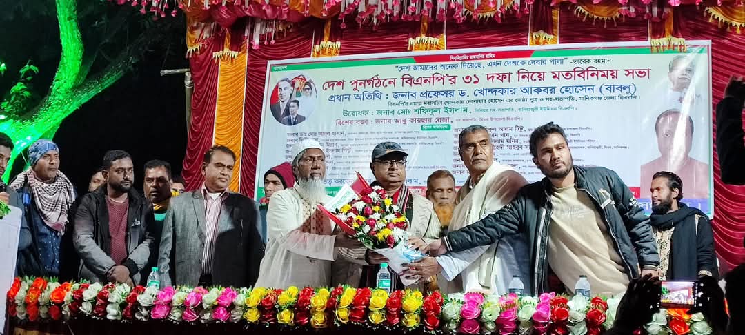 মোঃ শরিফুল ইসলাম, মানিকগঞ্জ প্রতিনিধিঃ শুক্রবার ১০ জানুয়ারি মানিকগঞ্জ জেলার ঘিওর উপজেলার বানিয়াজুরী ইউনিয়নের বানিয়াজুরী বাসস্ট্যান্ডে বাংলাদেশ জাতীয়তাবাদী দল (বিএনপি) কর্তৃক ঘোষিত রাষ্ট্রকাঠামো মেরামতের রূপরেখার ৩১ দফা নিয়ে এক মতবিনিময় সভা অনুষ্ঠিত হয়। সভায় উপস্থিত নেতৃবৃন্দ স্থানীয় জনগণের মাঝে রূপরেখা তুলে ধরেন এবং এর গুরুত্ব নিয়ে আলোচনা করেন।